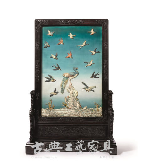 清乾隆 硬木嵌象牙“百鸟朝凰”图插屏成交价124万港元