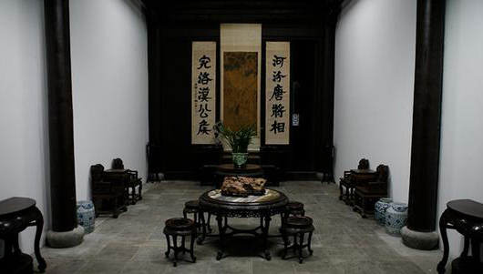 西泠拍卖公司厅堂里陈放著古家具与书画,处处可见江南气韵