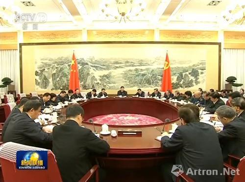 这十几年来,美院人看《新闻联播》总有一种特殊的情感。每当《新闻联播》播出党和国家领导人在中南海怀仁堂召开重要会议的镜头时,高墙竖壁上那件由美院人创作的巨幅山水画——《江山万里》总是格外引人瞩目。