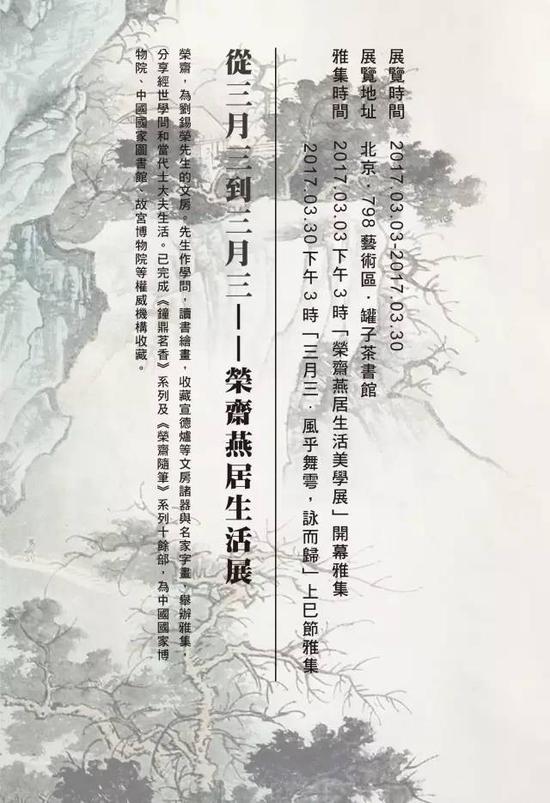 2017年3月,正是春暖花开时节,798罐子书屋推出一场士大夫的燕居风华,展示荣斋一角,即可管窥荣斋文化之士大夫高趣了。