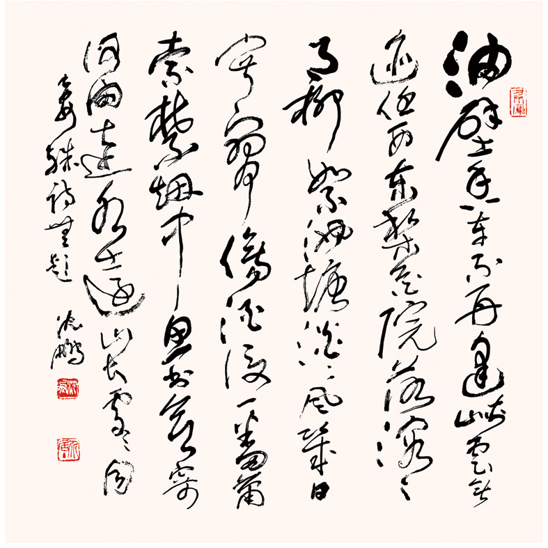 沈鹏 草书宋词 北宋 晏殊 浣溪沙 镜心 纸本 68×68cm简介:题识:晏殊诗无题。钤印:方不障、介居主,此作品作者为沈鹏
